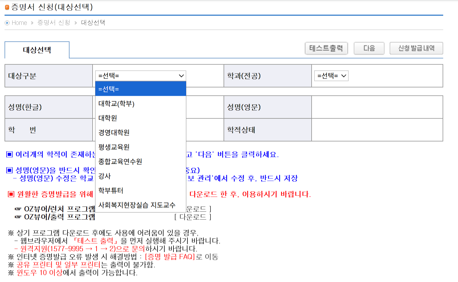 방통대 합격증 발급 방법